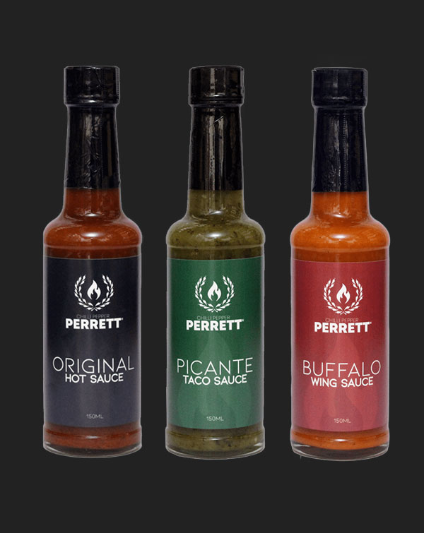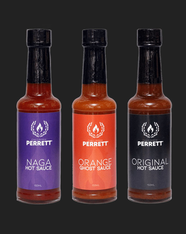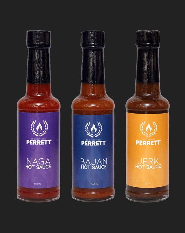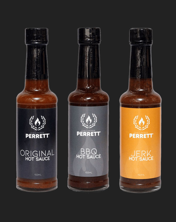 Chilli Pepper Perrett Heat Hot Sauce Collection Set (3x150ml).